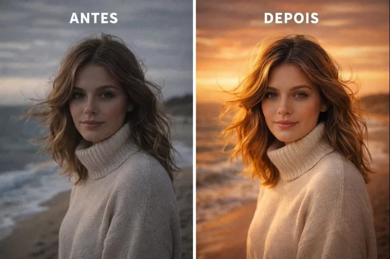 Esse é um dos melhores prompt para editar fotos quando a imagem original está boa, mas a luz não valorizou o assunto. Isso acontece muito em fotos feitas em ambientes internos, dias nublados ou situações onde a iluminação não foi ideal.