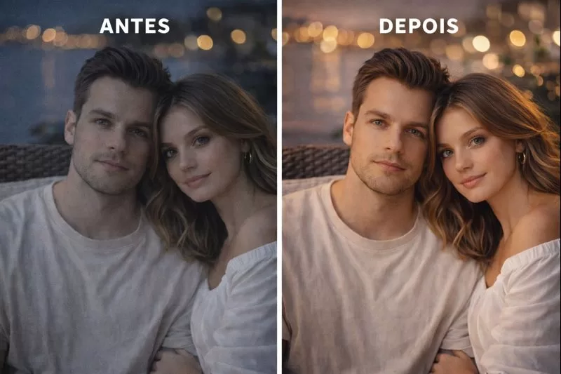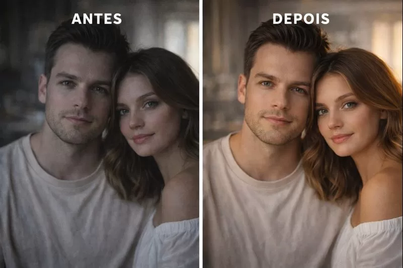 Você deve usar esse prompt quando a foto estiver escura, estourada ou com iluminação irregular. Ele também funciona muito bem em fotos externas onde o sol criou sombras duras demais no rosto.
